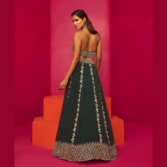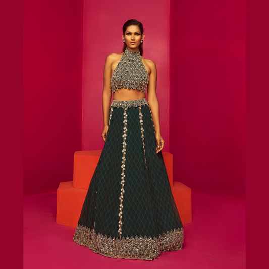 Halter Neck Blouse With Flared Lehenga