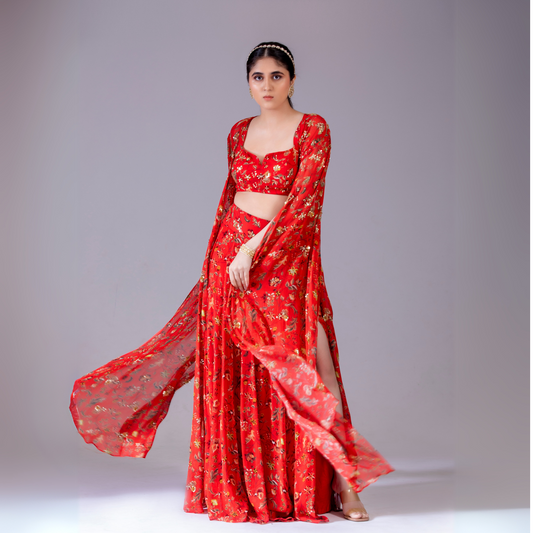 Red Lehenga Cape Set