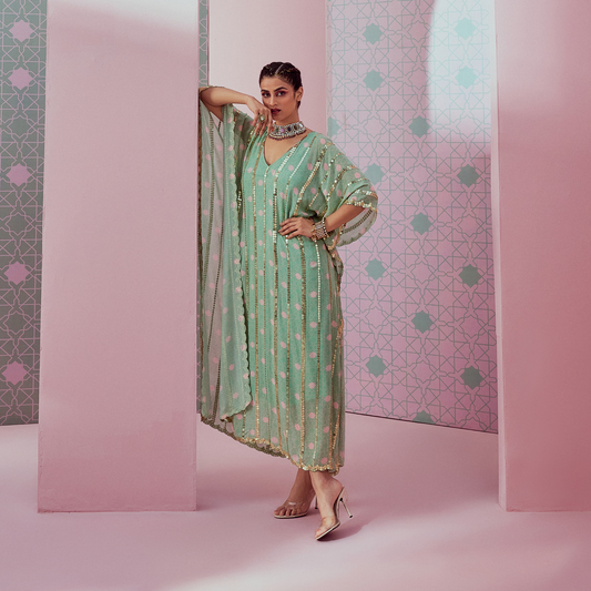 Mint green squence line kaftan
