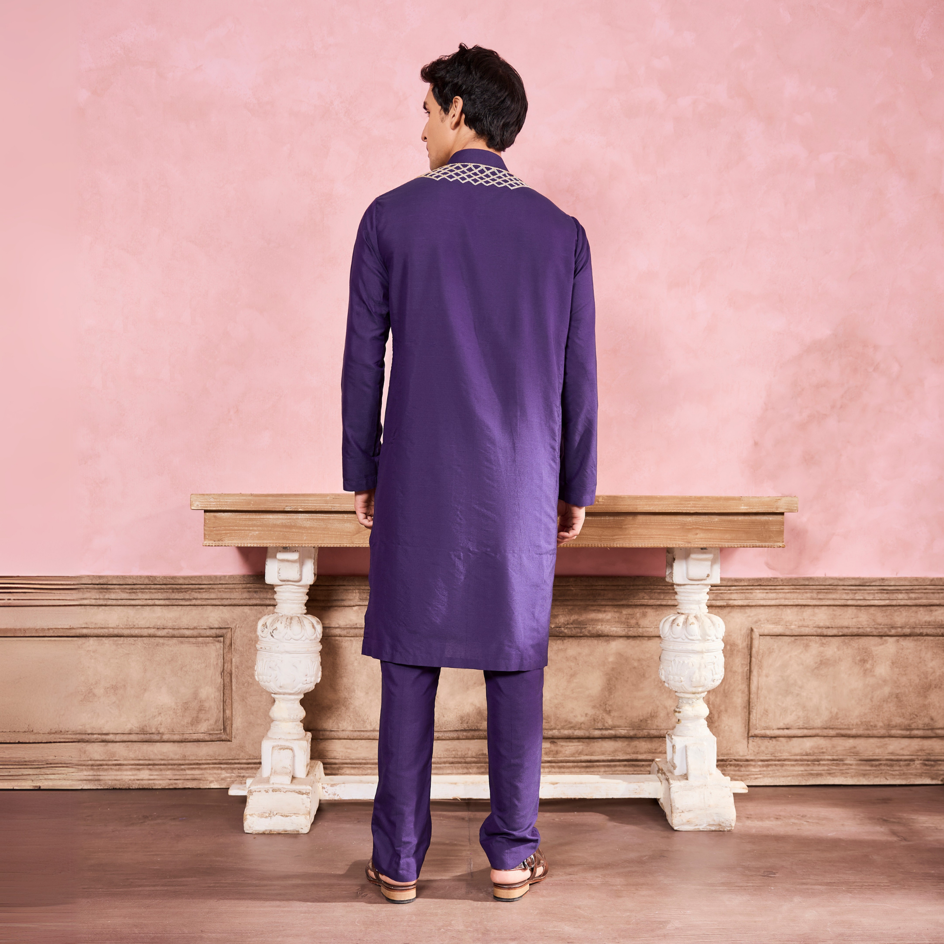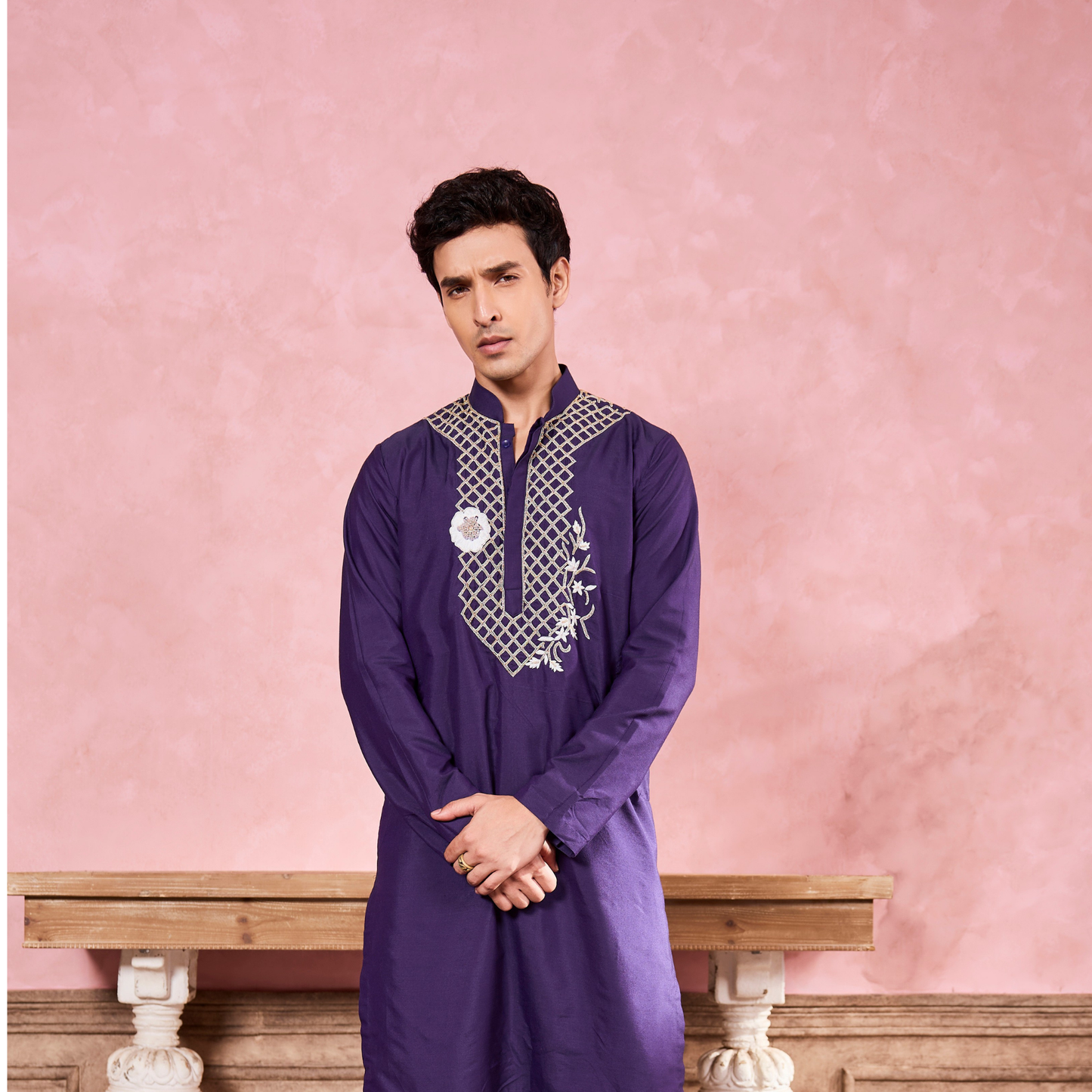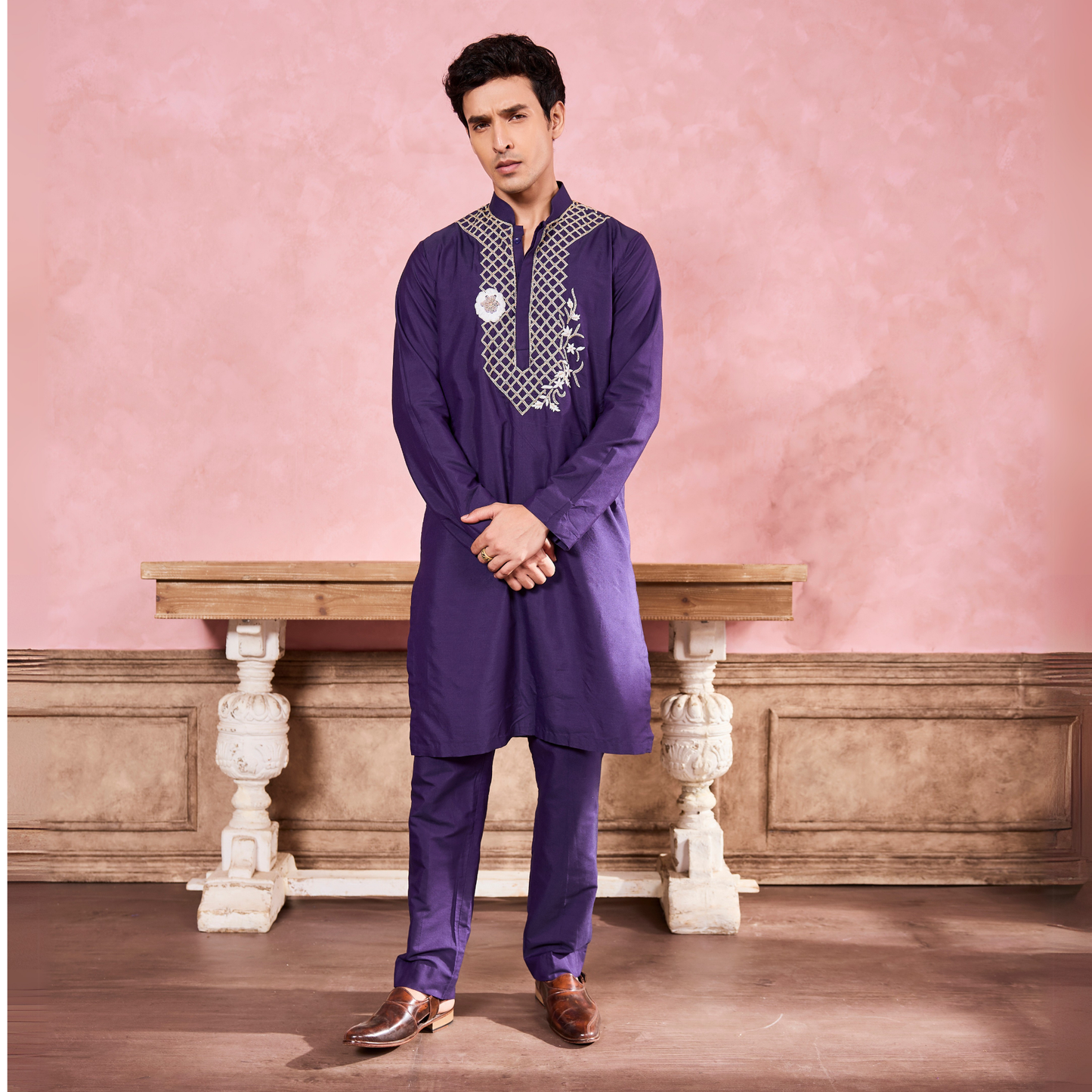 Blue Floral & Geometric Hand Embroidered Kurta Set