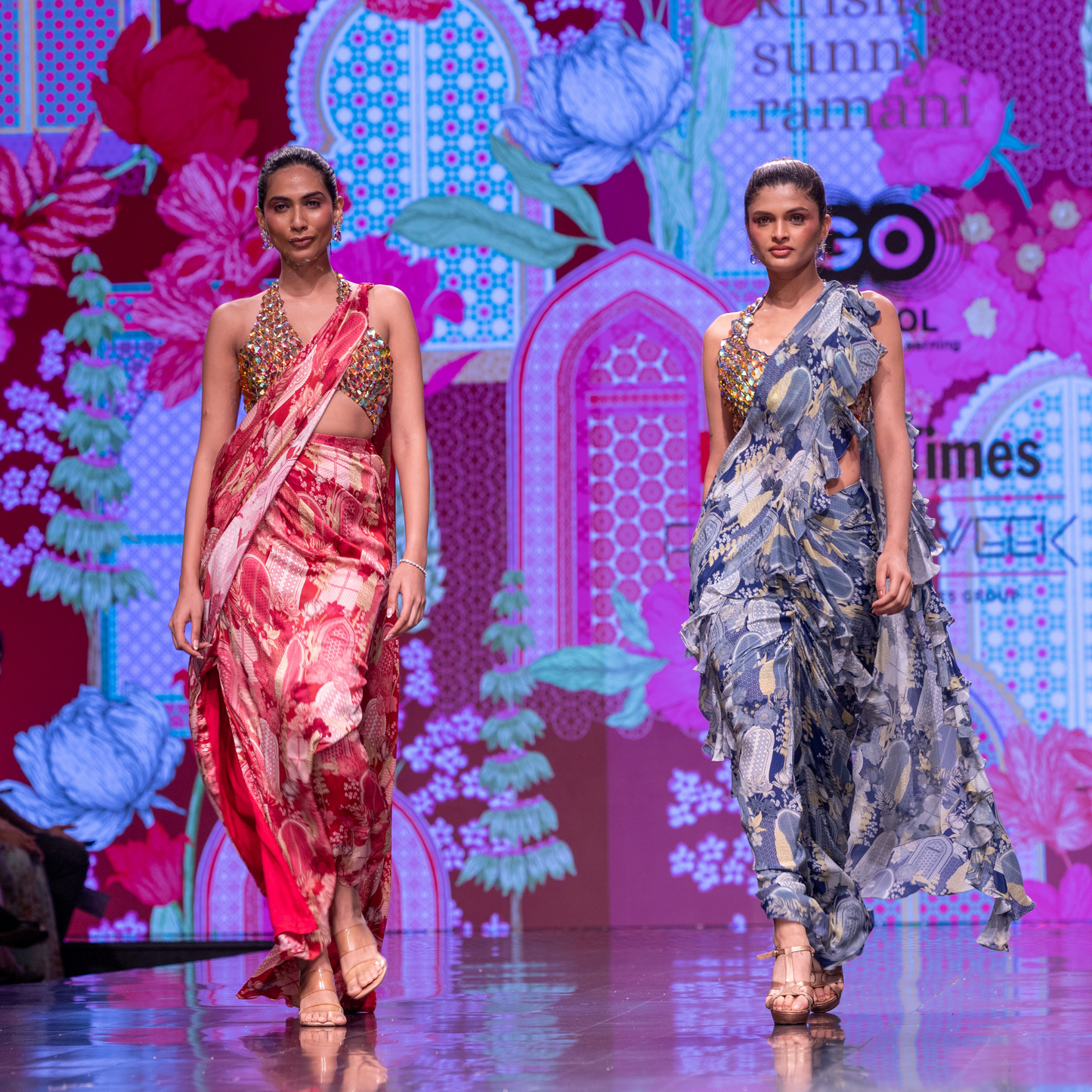 Blue embellished blouse paired with a pre draped saree
