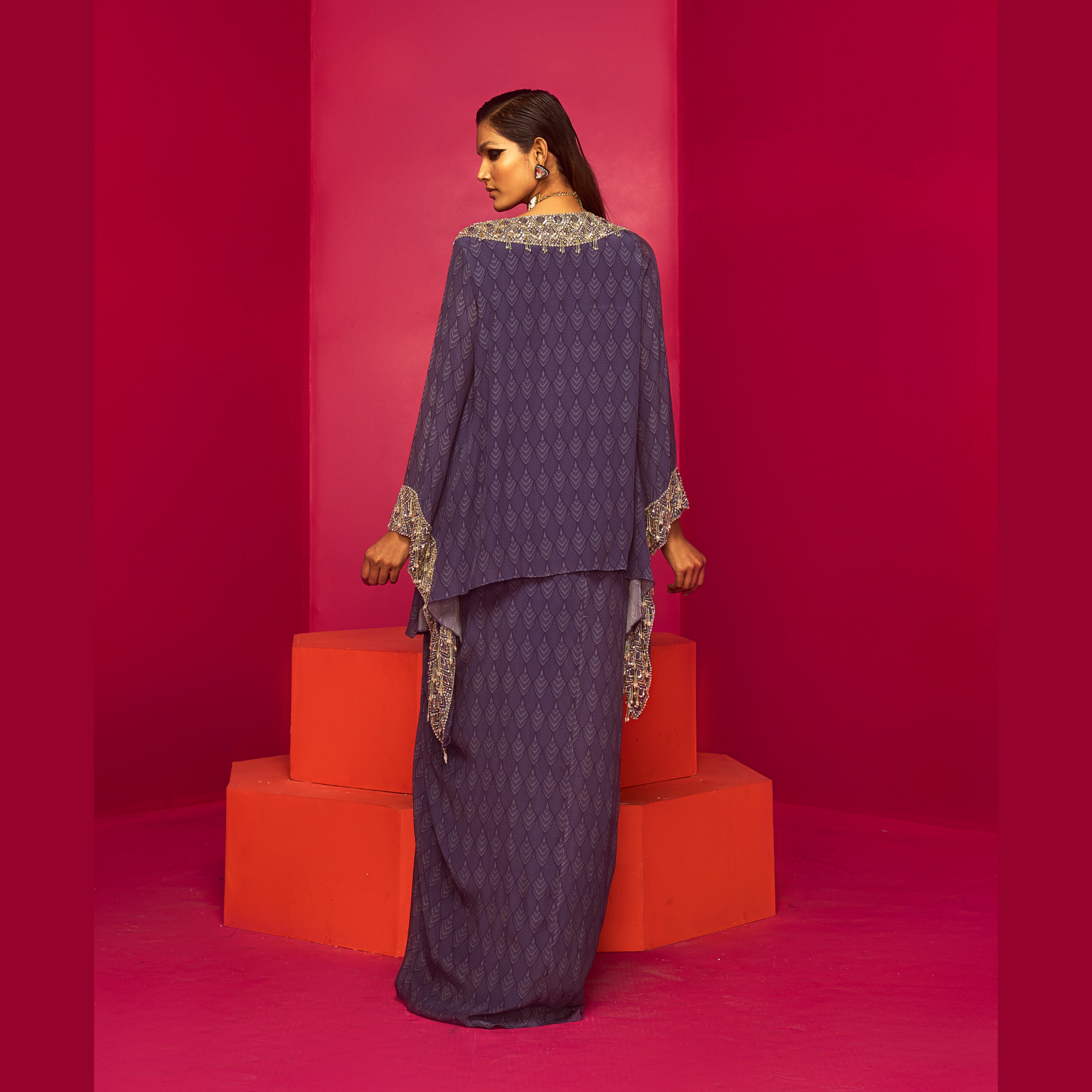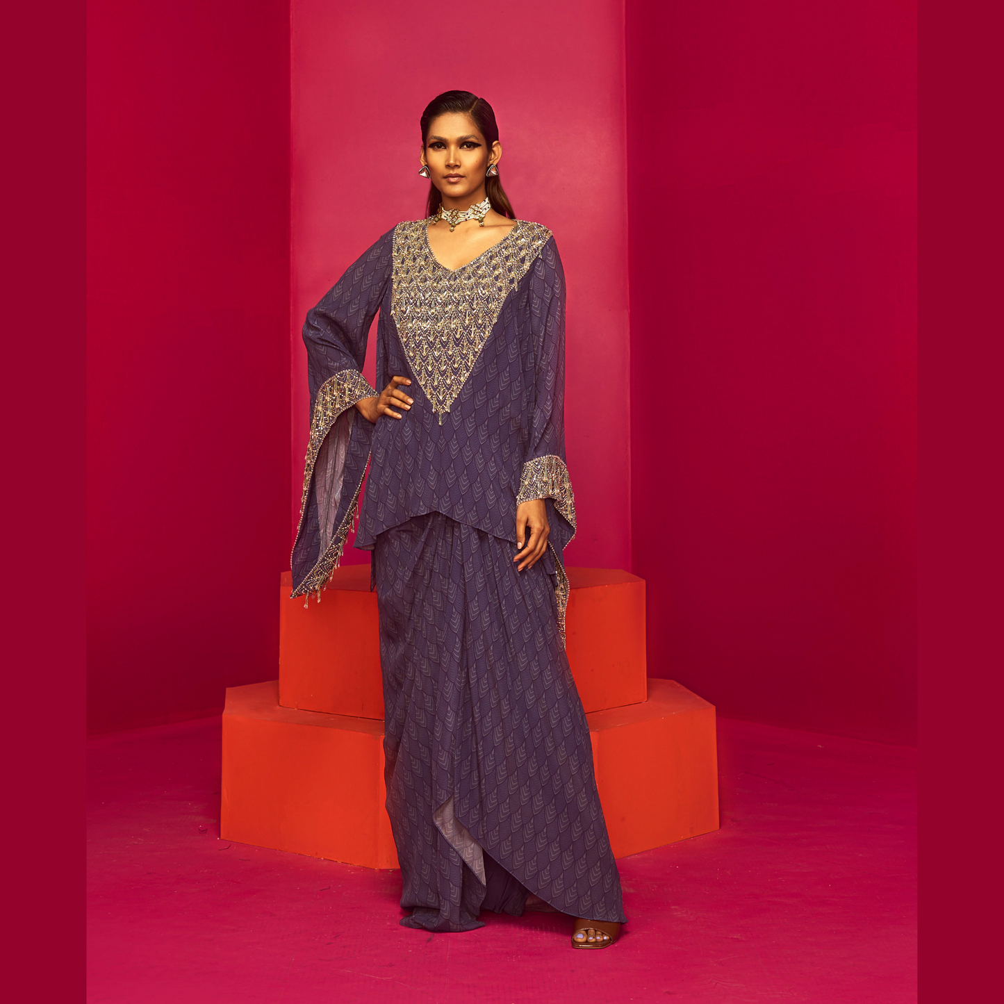 Purple embroidered kurti and dhoti set