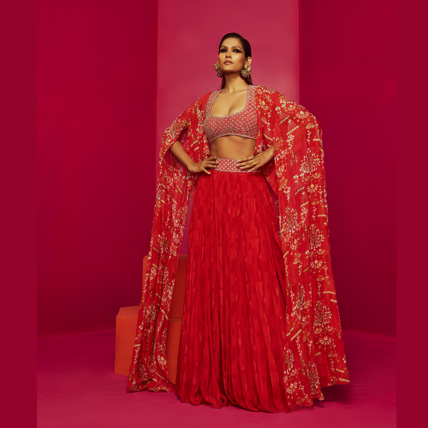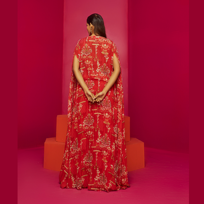 Red Lehenga Cape Set